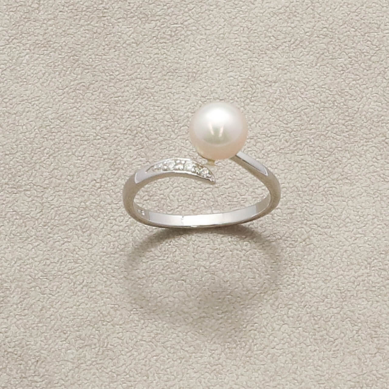柔らかな曲線が美しく指先を彩る、洗練された印象のカーブデザインリングです。上質なアコヤパールの艶やかな輝きと、流れるようなフォルムが調和し、シンプルながらも印象的な手元を演出します。