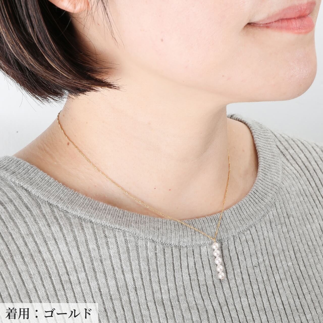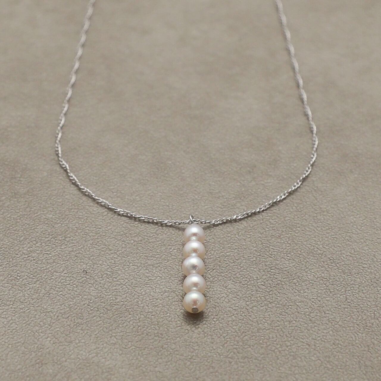 小粒で上品なアコヤベビーパールを縦に5粒並べた、華奢で繊細な印象のペンダントです。パールのやわらかな輝きが胸元にそっと寄り添い、上品さを引き立てながらも、カジュアルなスタイルにも自然に溶け込むデザインです。