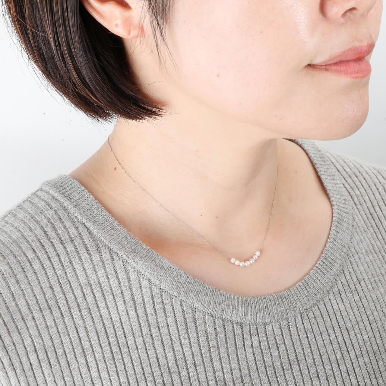 繊細な輝きを放つフェザーカットチェーンに、上質なアコヤベビーパールをあしらった、美しいデザインのプラチナペンダントです。胸元で優雅な曲線を描くベビーパールが、さりげなく上品な存在感を演出し、身に着ける方の魅力を引き立てます。シンプルながらも洗練されたデザインで、日常から特別なシーンまで幅広くお楽しみいただけます。