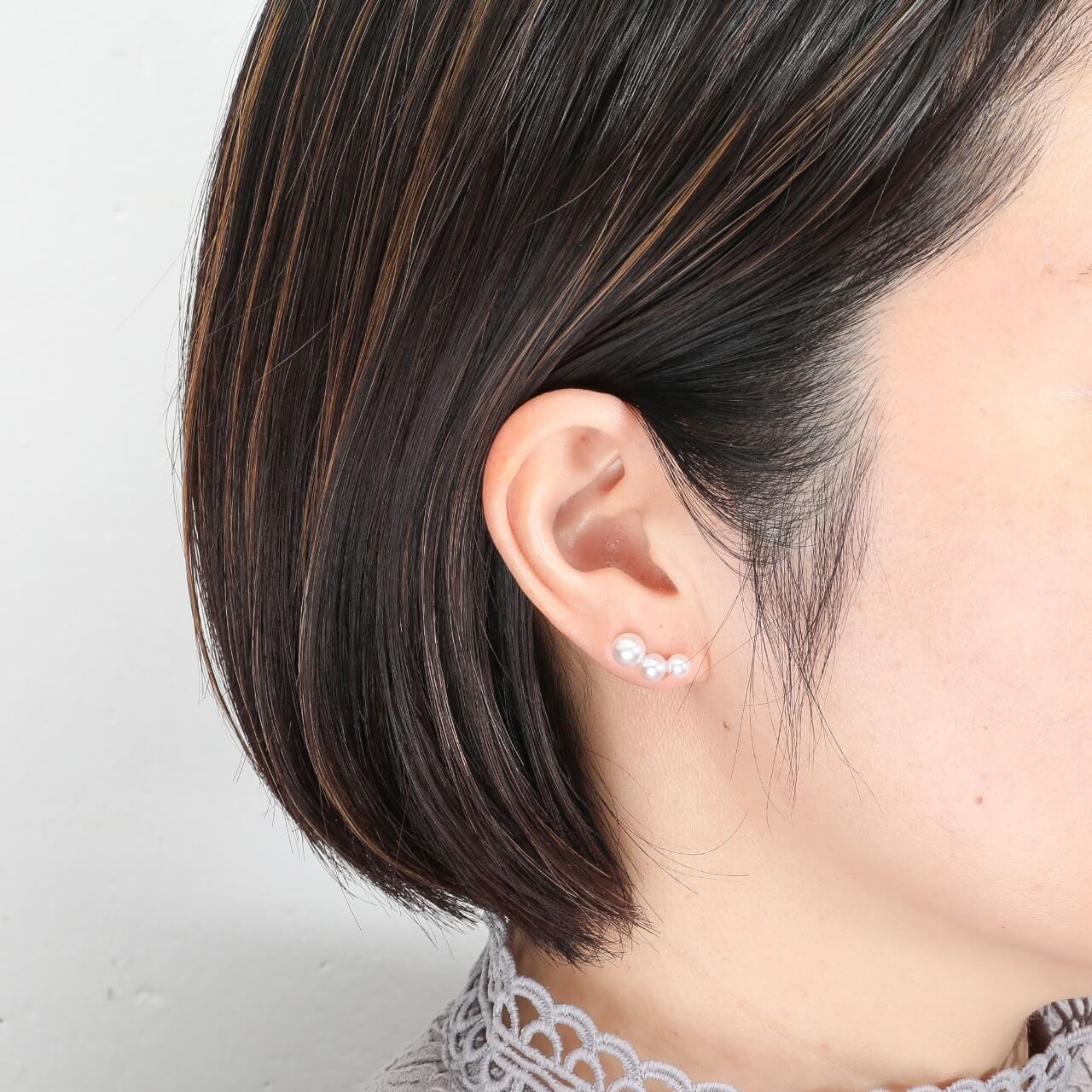 3粒のアコヤベビーパールが緩やかなカーブを描くように連なった、優美で洗練されたデザインのピアスです。上品な艶めきと女性らしいフォルムが、身に着ける方の魅力を一層引き立ててくれます。ポスト部分にはプラチナ(Pt)を使用しており、金属アレルギーが気になる方にも安心してご着用いただけます。日常使いから特別なシーンまで、幅広くお楽しみいただける一品です。